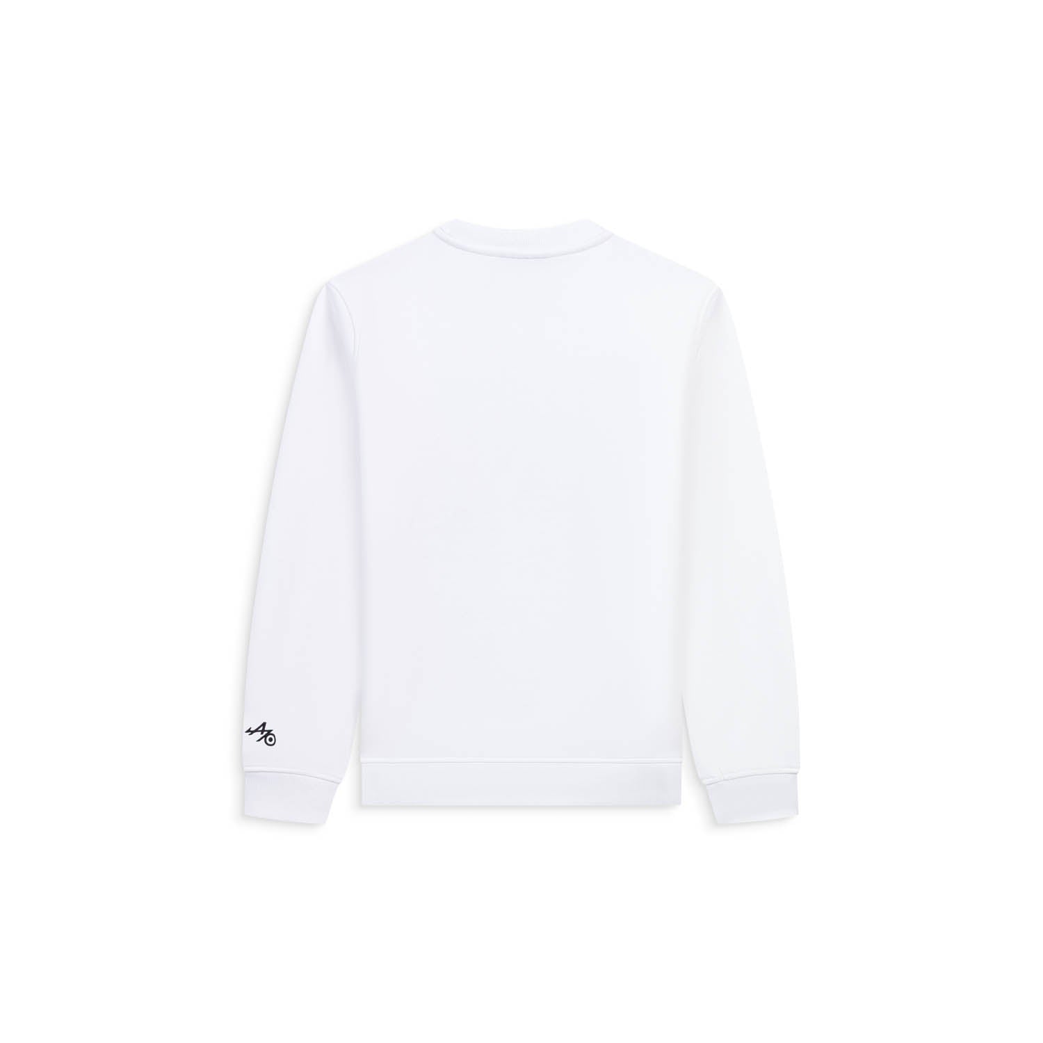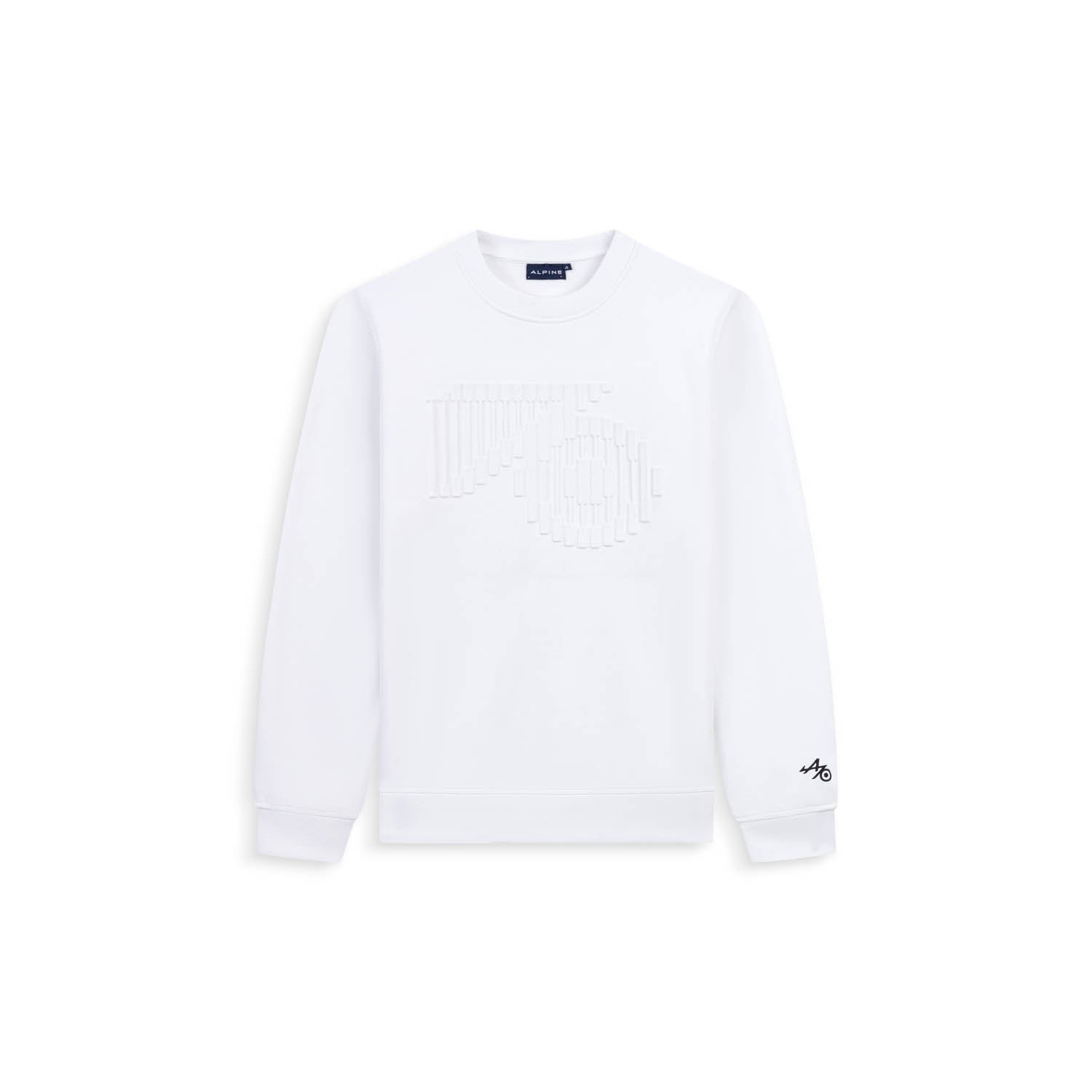 Sweat-shirt à coupe droite avec finitions premium ; 70 % coton / 30 % polyester, 340 g/m² ; col rond ; poignets et bords côtes ; graphisme poitrine en relief (embossé) ; broderie 70 ans manche ; couleur : blanc.